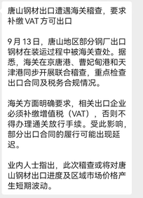 唐山钢材出口需补缴增值税海关稽查