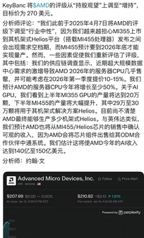 KeyBanc上调AMD评级至增持,目标价270美元
