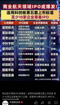 周五盘后,上交所发布《上海证券交易所发行上市审核规则适用指引第9号——商业火箭企业适用科创板第五套上市标准》,支持尚未形成一定收入规模的优质商业火箭企业在科创板发行上市。 第五套上市标准拓宽到商业航天,今天6月份就提过,这次是正式落地。 指引全文14条,其中核心关键的是第五条:“在申报时至少实现采用可重复使用技术的中大型运载火箭发射载荷首次成功入轨的阶段性成果” 在研中大型可回收火箭+目前IPO进程较快的,有蓝箭航天、星际荣耀、中科宇航、星河动力、天兵科技。 麒麟信安大股东湖南高新创投——旗下基