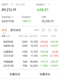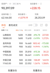 平仓止损:浪潮信息 平仓了结:中国卫通 减仓:金风科技 大盘又创新高,但收盘跌破五日均线,4000多家下跌。自媒体有说不要慌的,有说防守的,不知道听谁的。我是害怕风险,所以只留了有业绩的板块的票。 本来还打算建仓中际的,结果业绩一出来,今天直接板了,排板了一会看到大盘不好又撤单了,但业绩没得说,看后面有没有机会再去。金风盘中跌破黄线,减了仓。船舶不用怕,风雨飘摇,也能稳步向前。 免责声明:本帖只是记录本人操作记录,不构成投资建议!