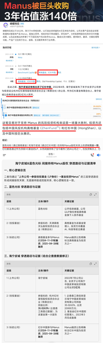 蓝色光标与海宁皮城同一逻辑都持有Manus股权关系需要补涨 3年估值涨140倍!Manus被Meta巨头收购,此次收购金额达40亿美元,为史上第三大并购案。Manus作为通用型AI智能体平台,其技术从"对话"到"执行"的突破引发行业估值重构 蝴蝶效应成立于2022年,致力于AI领域创新,以打造全球卓越的AI交互体验为目标。公司主要产品包括全球首款通用AI智能体产品 Manus 融资历程 2025-12-30 Meta并购融资数十亿美元 2025-04-26 融资7500万美元 Benchmark