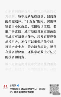 住房和城乡建设部部长倪虹在《求是》杂志发表署名文章,明确指出城市更新是“稳投资、促消费的关键载体”,其实施将“带动数十万亿元的投资和消费”。这标志着城市发展从“增量扩张”全面转向“存量提质”,一个以系统性更新为主导的新时代正式开启。新城市:作为国内领先的城乡规划与工程设计企业,深度卡位城市更新全流程服务,将从这一国家级战略中核心受益,迎来订单与估值的双重提升。 一、顶层设计驱动,市场空间巨大且确定 政策已明确城市更新作为推动高质量发展的“综合性、系统性战略行动”。倪虹部长强调,“十五五”期间实施