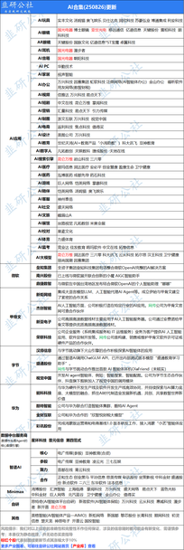 AI应用细分领域核心标的梳理 AI广告 蓝色光标、电广传媒、因赛集团、天下秀、省广集团、易点天下、福石控股、智度股份、遥望科技、元隆雅图 AI游戏 昆仑万维、完美世界、世纪华通、凯撒文化、姚记科技、三七互娱、游族网络、神州泰岳、汤姆猫、恺英网络 AI传媒 引力传媒、粤传媒、荣信文化、天娱数科、视觉中国、天龙集团、宣亚国际、XH网、R民网、湖北广电 AI视频 万兴科技、虹软科技、当虹科技、会畅科技、拓尔思、凌云光 AI医疗 卫宁健康、迪安诊断、国新健康、塞力医疗、久远银海、创业慧康、万达信息、华宇