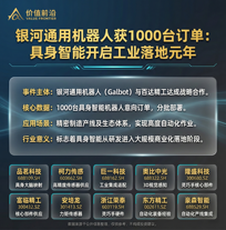 1000台订单砸向精密制造!银河通用打响具身智能大规模落地“第一枪”