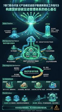 近日,7部门联合印发《产品碳足迹因子数据库建设工作指引》,旨在构建国家级碳足迹管理体系的核心基石,助力高质量绿色发展。 建设目标明确: 规划明确了“两步走”的时间表。到2027年,初步构建国家数据库框架;到2030年,全面建成覆盖面广、数据质量高、且具有国际影响力的国家级数据库。 协同共建格局: 该体系依托国家温室气体排放因子数据库,构建了一个“协同共建共享”的生态。以国家数据库为核心,涵盖基础能源、原材料、交通运输等关键领域,并整合地方、行业协会及企业/科研机构的数据资源。 全流程闭环管理: