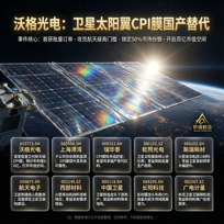 在万亿级别的商业航天赛道爆发前夜,市场的目光往往聚焦于火箭的轰鸣与卫星的升空,却极少有人注意到,决定这场太空竞赛胜负的关键,往往隐藏在那些肉眼几乎看不见的微小材料之中。 今天,我们要深度拆解的,正是这样一个极具爆发力的细分领域——卫星太阳翼CPI膜,以及刚刚在此领域投下一枚深水炸弹的领军企业:沃格光电。 一、太空中的“黄金薄膜”——CPI膜为何成为胜负手? 要理解沃格光电此次突破的含金量,首先必须理解什么是CPI膜,以及它在商业航天中不可替代的地位。 随着“千帆星座”等国产低轨卫星计划的加速落地