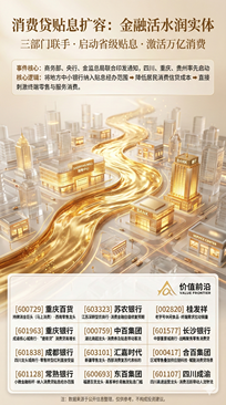 近日,商务部、央行、金监总局三部门联合印发通知,正式启动消费贷贴息扩容政策。这一政策犹如一道“金融活水”,旨在通过降低居民消费信贷成本,直接刺激终端零售与服务消费。本文将基于最新的政策动向(特别是四川、重庆、贵州的率先启动),结合一张涵盖核心受益股的“全景逻辑图”,深度剖析这一政策背后的经济逻辑、传导机制以及资本市场的潜在投资机会。 一、 三部门联手,打响提振消费“攻坚战” 1.1 政策核心内容 本次政策的核心在于“扩容”与“贴息”。 扩容:将地方中小银行正式纳入贴息经办范围。过去,此类政策往往