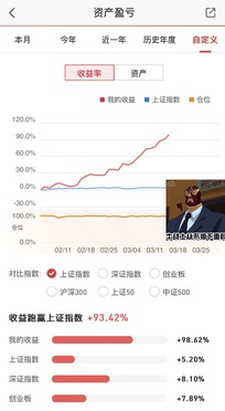 $上证指数(SH000001)$ $天茂集团(SZ000627)$ $新华保险(SH601336)$ 中国人寿 中国人保 中国平安 中国太保 安硕信息 银之杰 新力金融 瑞达期货 南华期货 (不cue证券渣男) 从2月5号正式参加挑战以来,到3月14号一个月多一个礼拜时间严格执行纪律,再次做到了翻倍。感慨的是,其中明显更多的是靠运气,以及在每次心态平和、情绪稳定地执行模式内的交易后,收获了知行合一的成就感(无论成败盈亏)。 回到盘面,今天的保险只是一个开端,有心阅读我3月3号复出第一篇