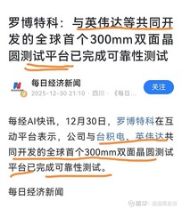 罗博特科更新: 1谷歌OCS欧洲代工厂,全产线设备,8-10条线,两年内交付,一条产线1000万欧元。 2硅光GPU共封装已经参与开发,明年小批量,后续光引擎耦合需求指数级增长。 3核心产业大客户N和T,有望成为港股ipo基石投资人。 4硅光晶圆光电同步测试设备需求,29年超过5亿欧元。 5元旦后批量订单陆续交货。 罗博特科在互动平台表示,公司与台积电、 英伟达共同开发的全球首个300mm双面晶圆测试平台已完成可靠性测试。 【罗博特科】依托ficonTEC高精度耦合封测设备,商业航天+CPO/O
