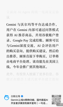 核心观点: AI应用正从内容创作迈向商业变现,谷歌联合沃尔玛等巨头将Gemini AI升级为“虚拟商家”,标志着“AI智能体主导的商业”时代正式开启。浔兴股份通过控股子公司深圳价之链跨境电商,已深度融入谷歌AI购物生态,成为这一万亿级赛道中具备稀缺卡位优势与直接受益逻辑的标的 1、产业趋势:AI重构电商入口,从“搜索”到“对话”,GEO(生成式引擎优化)催生万亿新蓝海。谷歌公司于2026年1月11日宣布,将与沃尔玛等大型零售商合作,扩展其Gemini AI模型的购物功能,推动其从“智能助手”升级