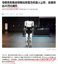 本文为每日下午3时开始至次日早晨6时市场新闻梳理,为提高文章质量以及内容的全面度,文章会在工作日(周二至周五)早晨7:00前,周日的下午17:00前发出。以最高的质量分享给大家,节约复盘时间。 (文章仅为个人新闻梳理复盘,仅用于研究学习,提高市场认知能力。不做市场预测,不做投资咨询,没有任何经营项目和收费内容。本文内容基于公开信息整理,不构成投资建议,股市有风险,入市需谨慎) 【1月20日盘前题材简述】 1、马斯克称推动特斯拉转型为机器人公司 估值将达25万亿美元 预言到2040年机器人数量将达