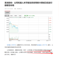 同花顺(300033)金融研究中心12月25日讯,有投资者向圣龙股份(603178)提问, 公司在机器有领域是否有业务布局 公司回答表示,尊敬的投资者:您好! 公司机器人关节驱动系统等新兴领域已经进行前瞻性布局。在机器人领域,公司携手合资公司圣龙理研,正在全力研发,已有产品样件与客户进行交流。 谢谢关注! 同花顺(300033)金融研究中心12月25日讯,有投资者向圣龙股份(603178)提问, 公司在机器有领域是否有业务布局 公司回答表示,尊敬的投资者:您好! 公司机器人关节驱动系统等
