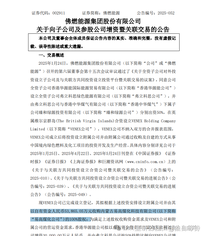 2025年1月24日,佛燃能源集团股份有限公司(以下简称“公司”或“佛燃能源”)召开的第六届董事会第十五次会议审议通过了《关于全资子公司对外投资设立子公司及与关联方共同投资设立投资平台暨关联交易的议案》,同意公司全资子公司香港华源能国际能源贸易有限公司(以下简称“香港华源能公司”)设立全资子公司弗立科思绿色能源有限公司(以下简称“弗立科思公司”),并由弗立科思公司与香港中华煤气有限公司(以下简称“香港中华煤气”)下属子公司臻和绿源投资有限公司(以下简称“臻和绿源公司”)分别出资50%,在英属维尔