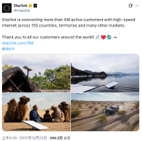 短短47天又多100万用户!马斯克的卫星互联网业务增速“起飞” 原创 环球市场情报 2025-12-23 17:18 星期二 财联社 史正丞 ①马斯克旗下的卫星互联网业务Starlink宣布全球活跃用户数突破900万; ②值得关注的是,其跨越用户增速里程碑的周期不断压缩,最新一个100万用户仅用47天完成; ③马斯克感慨“不容易”,但也强调下一阶段的飞跃即将到来。 财联社12月23日讯(编辑 史正丞)数小时前,科技富豪马斯克的卫星互联网业务“星链”(Starlink)宣布,公司的全球活跃用户数量