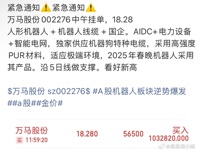 紧急通知⚠️紧急通知⚠️ 万马股份002276中午挂单,18.28 人形机器人 + 机器人线缆 + 国企。AIDC+电力设备+智能电网,独家供应机器狗特种电缆,采用高强度PUR材料,适应极端环境,2025年春晚机器人采用其产品。沿5日线做支撑。看好新高 $万马股份 sz002276$ #A股机器人板块逆势爆发##a股# #金价# S万马股份(sz002276)S