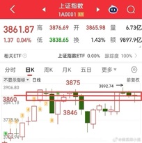 大盘不破3846点,其实还是不需要担心的,今天证券板块拉升,想要继续带动大盘上攻,但是成交量一直不放量,又是一个冲高回落! 现在不放量,大多数资金都在做T没有人愿意格局,所以个股分时也是震来震去! 我感觉这里需要靠一次大跌或者大涨来刺激成交量,不然市场就非常难玩,明天就很关键了,要么直接大跌跌破20日线,要么突破3875点,这样才能放大量! 今天不放量,就没有什么亮点!只能跟个资金T #阿里巴巴港股总市值重回3万亿港元##a股#