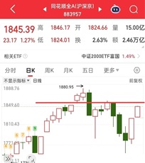 接下来的行情怎么看?大致来猜测一下! 一、全A今天走盘整,这个盘整可以是十字星,也可以是个中阴线(不破1827点就行),如果收出这样的形态,我认为还可以去拿点,这样明天大概还能继续上攻! 二、全A今天继续拉升,那么就要注意成交量,它就必须要放量,不放量就会出现一波跳水,只要拉升那么今天就把仓位继续扔一扔,不要怕踏空,只有突破左侧高点,回打不破之时,才能继续看多! 具体思路盘中再看,跟着信号走!