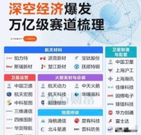 当下市场谁是“深空经济之王”! 一张图看懂“深空经济”主要涉及的公司,从深空经济分布涉及各项业务来看,一是航天材料层有涉及的公司主要有:铂力特、派克新材和宝钛股份等公司;二是卫星运营主要有:中国卫星、航天宏图和中科星图等公司;三是火箭发射和总装主要有:航天动力、中天火箭和航天科技等公司;四是地面终端主要有:海格通信、震有科技、北斗星通和雷科防务朗等公司;五是卫星制造与配套主要有:中国卫星、上海沪工、上海瀚讯和佳缘科技等公司。 深空经济概念股将会带来万亿级市场,凡涉及的上市公司的个股也将迎来新的提