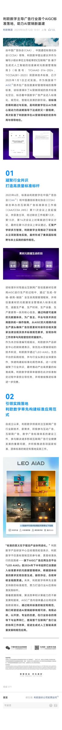 2、据2025年5月20日机构调研,公司机械制造业务开发液冷用泵适配数据中心液冷系统需求,已对接国内主流供应商开展送样和联合验证。 3、据2025年5月20日机构调研,数字营销业务深度应用AI技术,自研AIGC平台"LEO AIAD"实现营销全链路智能化升级。 1、官微4月18日消息:利欧数字发布广告行业首个MCP服务,正式宣布旗下开放API服务工具支持MCP协议。该服务基于MCP协议设计,旨在为大语言模型和AI Agent提供全链路、标准化的系统对接能力,打通利欧数字内部系统与外部AI生态的深