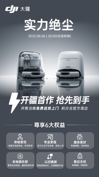 大疆也要 “入地”?跨界扫地机器人 新品呼之欲出日前,大疆创新通过官方公众号发布预告:“8月6日20:00丨实力绝尘”,并配发两张疑似扫地机器人的产品轮廓图,为其扫地机器人产品预热,迅速引发市场热议。记者实测发现,通过预告中的 “立即预约” 按钮可跳转至大疆京东自营旗舰店,页面明确显示产品为 “RO