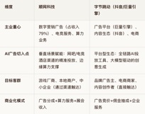 实锤字节ai广告营销 顺网科技与字节跳动在AI广告营销领域的定位、能力和合作模式存在显著差异,两者并非直接竞争关系,而是场景互补、技术协同的潜在合作关系。以下是基于业务布局、技术能力、市场定位三个维度的对比分析: ------ 一、核心业务定位对比 关键差异:顺网科技是场景服务商,依托网吧/电竞酒店等线下渠道的流量入口,做垂直领域的AI营销工具;字节跳动是流量平台方,通过抖音、巨量引擎等产品构建广告生态,AI能力服务于平台内投放效率提升。 ------ 二、AI技术能力与产品矩阵 (一)顺网科技