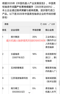 12月26日晚,天创时尚发布公告称,公司控股股东将变更为安徽先睿投资控股有限公司,公司实际控制人将由李林变更为胡先根。公司股票、可转债债券以及可转债转股自12月29日起复牌 慈兴集团12月17号成立的安徽先睿,专门买壳用的。 慈兴集团直接压了长盛轴承一头,长盛250亿市值,给天创300亿不过分,目前机器人重组如火如荼,这个票不炒说不过去。 慈兴集团机器人轴承客户以减速器厂商与机器人本体厂商为主,覆盖国内外头部与知名企业,以下为已公开且经权威信源确认的客户清单(按合作类型分类): 一、核心机器人