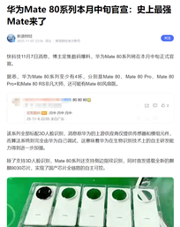 华为 Mate80下周二发布,或采用全金属机身设计!
