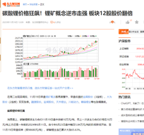 11月19日早盘,锂矿概念股走强,截至9时35分,金圆股份3连板,川能动力涨停,西藏珠峰、大中矿业、云图控股涨逾3%,盐湖股份等跟涨。基本面上,碳酸锂期货爆发,碳酸锂期货主力合约突破100000元/吨, 为2024年6月以来首次,日内涨近6%。 另据上海钢联发布数据显示,今日电池级碳酸锂(早盘)中间价较前一日上涨2800元。自11月初以来,碳酸锂价格累计最大涨幅已突破20%。 最近热法磷酸对黄磷价格有支撑,湿法磷酸因硫持续涨价,最近开车不好,现湖北三宁,湖北宜化,河北冀衡都停车,云南天安,三环中