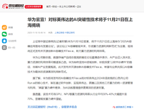 华为官宣对标英伟达AI突破性技术明日在上海揭晓!