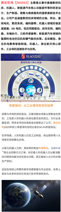 昊志机电:机器人、商业航天、机器人,工业母机、智能制造,发出五大赛道最强音!