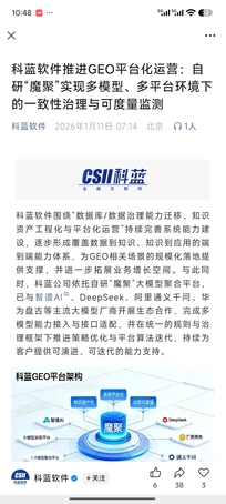 S科蓝软件(sz300663)S 科蓝软件与GEO高度相关,且是A股少有的“技术型GEO参与者”。 它不是做营销内容优化,而是从底层数据治理 + 大模型聚合平台切入,为GEO提供基础设施支撑。 推进GEO平台化运营:自研“魔聚”大模型聚合平台,实现多模型、多平台环境下的一致性治理与可度量监测。 已对接 智谱AI、DeepSeek、阿里通义千问、华为盘古 等主流大模型 在不同AI模型下,确保企业知识资产输出一致性、合规性、可追踪 能监测品牌/产品在AI生成答案中的提及率、置信度、上下文相关性 把企