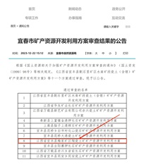 宜春市矿产资源开发利用方案审查结果的公告