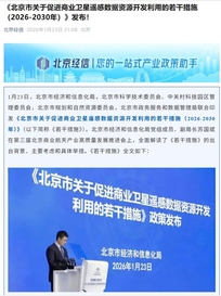 【导读】《北京市关于促进商业卫星遥感数据资源开发利用的若干措施(2026—2030年)》发布 一、政策驱动下的航空航天发展空间 北京市《若干措施》以“天地一体、应用牵引、数智融合”为核心,明确2026—2030年发展路径,为航空航天产业开辟三大空间: 1. 产业链完善空间:鼓励企业并购重组,培育“卫星数据+行业”融合主体,强化链主企业全球竞争力;专精特新梯度培育覆盖数据处理、天基算力等细分领域,夯实产业链基础。 2. 技术迭代空间:重点突破敏捷获取、智能解译、超高分辨率成像等关键技术,布局卫星遥