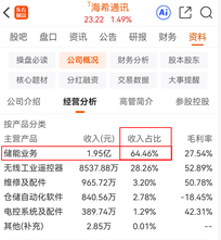 2025年,海外储能市场的订单潮持续增长,刺激了对储能电芯和储能系统的需求,国内头部企业订单应接不暇,据悉,当前100Ah电芯订单已排到2026年2月,产线全部满产,难以承接新需求。 海希通讯:储能收入占比64%,公司新能源业务主要包括储能专用电芯的研发 公司新能源业务主要包括储能专用电芯的研发及储能设备、模组、PACK 等产品的研发、生产和销售。公司目前主要产品为储能专用模组、 PACK、储能系统。 报告期内,公司新能源业务主要为储能系统的制造和销售。公司主要通过招投标、商业谈判、行业展会、直