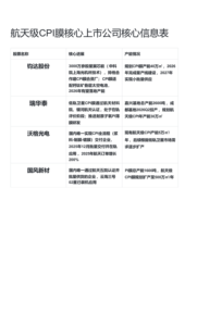 航天级CPI膜核心上市公司核心信息表