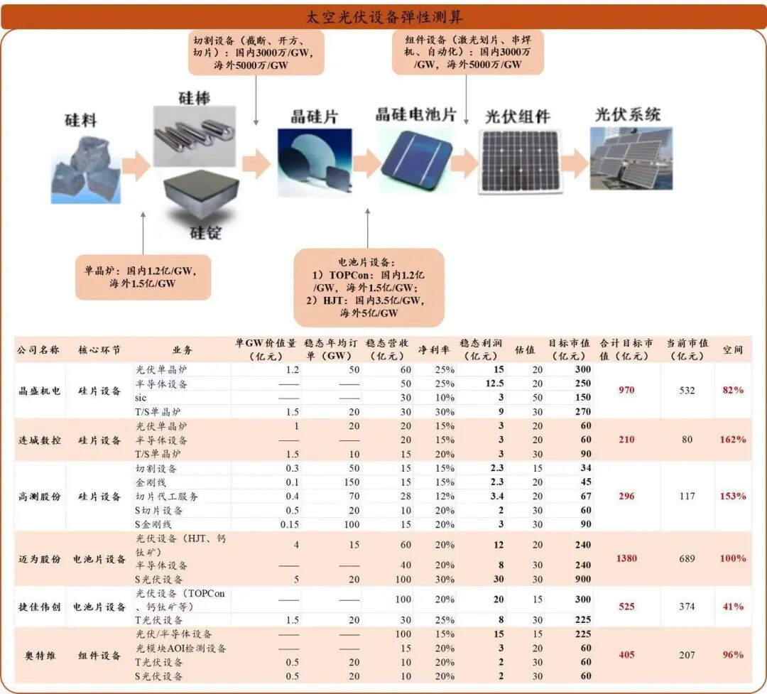 风险提示:以下内容均是个人笔记,如侵权或涉及信披问题麻烦联系小编删除,以下任何观点均不构成投资建议,股市有风险,投资需谨慎!!! 1、【天风电新】3年100GW光伏产能,现在得相信太空算力了-0123 马斯克表示: 1)几年后,SpaceX将发射太阳能人工智能卫星。 2)SpaceX和Tesla正在提升太阳能产能,目标【各自三年左右时间分别达100GW产能】。 3年100GW产能,相较于每年10GW需求,意味着3~4倍弹性。 当下依然最看好设备,业绩率先见底,SpaceX链上最兑现订单,主线是H