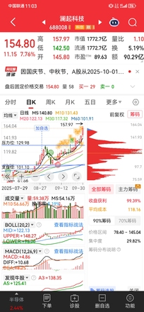 中芯国际8%S中芯国际(00981)S多了。看S凯美特气(sz002549)S 一、 技术面分析:关键位共振,强化看涨信号 近期走势显示,凯美特气在经历高位震荡后,于关键技术点位形成了强烈的企稳反弹信号。 经典的K线反转组合:股价在9月29日于10日均线附近收出缩量十字星,此形态在关键移动平均线处出现,是下跌动能衰竭的明确迹象。次日(9月30日),股价依托10日线支撑,形成了一根实体饱满的“阳线吞没”形态,这构成了教科书式的短期看涨组合,确认了买盘力量的回归和多头趋势的延续。 支撑与动能的共振: