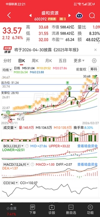 盛和资源老鸭头上涨