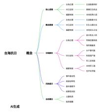 核心投资逻辑 台海主题:围绕潜在的统一行动或军事威慑,直接利好参与主战装备(战斗机、导弹、舰艇)研发制造的企业。 对日反制主题:针对中日之间的地缘政治摩擦,主要体现在水产品进口限制(水产替代)和科技领域的国产替代(如电子材料、光学材料)。 福建地域主题:福建地处对台前沿,且与台湾隔海相望,本地军工或相关企业被认为具有地域优势和信息优势。 “台海抗日”概念图谱 各路径详细解析与核心标的 1. 台海主题:主战装备(核心方向) 这是最直接、最硬核的逻辑,直接对应潜在军事需求。 战斗机/无人机