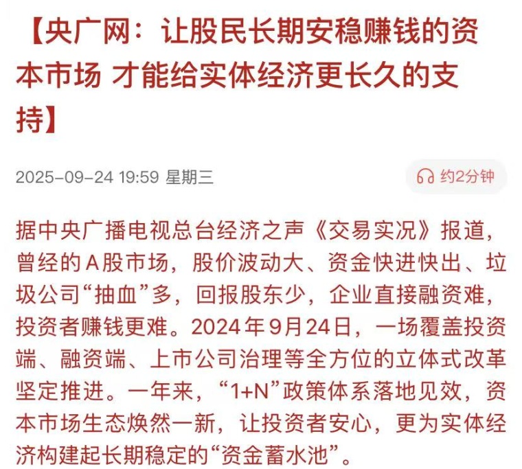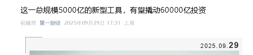 宏观新闻 1)会议: 关键词:含科量提高、波动率下降、高质量发展。 2)利好:《最新财新周刊|新型政策性金融工具将出》 9月底前落地,规模初步定在5000亿元,其中国开行2500亿元、农发行1500亿元、进出口银行1000亿元。与前两次不同,这次将集中在数字经济、人工智能等八大领域,并有20%投向民企项目。 ——来源:《财新周刊》2025年09月22日第37期 3)924: 行业信息 泛AI: 1)算力: ①周末消息:“中国星际之门”(芜湖) ②19:28:24【吉林省:建设长春都市圈算力集群和