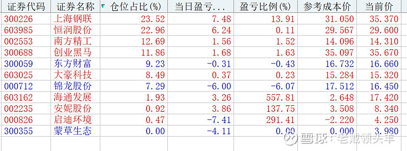 板块方位以华为概念为主。市场的板块是轮动的。持续上涨的股票还是少数。稳健还是适合低吸,确定性比较好。 昨日提示可以55分仓进场,满仓博弈的,今日也涨了4%。虽然波动不大,但可以重仓博弈,我最喜欢这种 券商大跌,还好7%仓位试试。虽然跌停也无所谓。东方财富也都出, 为明日可以确定性博弈去参与,今日简单点。 大盘指数到压力,需要时间修复一下才能继续上涨, 今日就先这样,好好看看大盘的表现。 S国联证券(sh601456)S S首创证券(sh601136)S S太平洋(sh601099)S