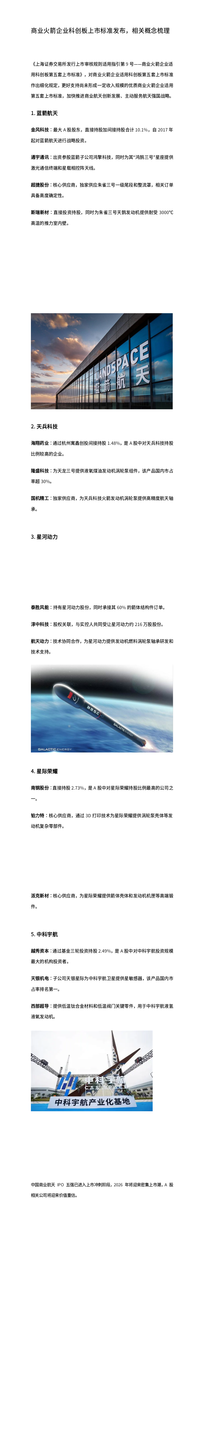 商业火箭企业科创板上市标准发布,相关概念梳理