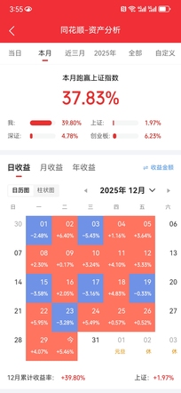 25年的最后一月、最后一天,安稳收工了。这一年改掉了很多习惯(注,排毒的过程很痛苦却也是必然要越过的障碍。所以羡慕炒股始就遇到好老师的幸运同道,可以少走弯路也少养成坏习惯),也基本稳定了自己的“持续择强”模式(刮风下雨可以不知道,自己的事自己要知道。花里胡哨的过程没用,能真金白银的稳健落袋才是王道。对于模式的迭代,在没出错之前维持不变就行。市场大变化有了更新模式需求时再定向搜寻补丁来修正就行。不要轻易再去学习或参照新模式,多学多错。自己真金白银实验出来的模式才是最适合自己的模式)。 2025有幸