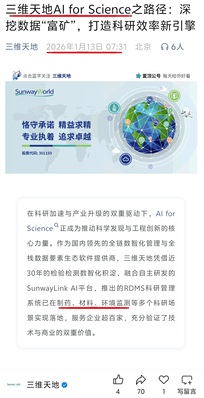 三维天地,两市唯一囊括当下所有热门题材,概念正宗且有落地应用,稀缺稀缺! 概念包括:AI4S、AI制药、AI半导体设计、量子科技、商业航天、智能制造、工业自决策智能体、人形机器人、玄学 以下所有信息来源于公司官方资料: 1、AI制药:已有与头部药企实现AI制药案例 背景:英伟达与礼来宣布,双方将在未来五年内投入10亿美元,在旧金山湾区建设一座联合研究实验室,旨在加速人工智能在制药行业中的应用。 三维天地官微宣布其AI智能体制药已有与头部药企落地的案例: 2、半导体的AI4S,公司AI智能体参与头