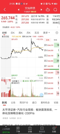早上追高文灿转债套了一点,下午一体化出消息以后文灿直接起飞,解套了。 后面看瑞鹄转债形态不错,也搓了一下。 注意下后面上市的博俊转债,一体化压铸,要是卡到一体化概念起飞的节点,加上真是流通盘不大,要起飞,隔夜挂30% 130。 创业板转债,竞价完了停牌期间挂143再顶。