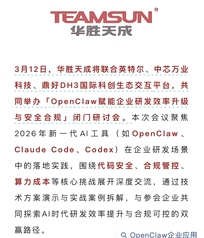 3月12日,华胜天成将联合英特尔、中芯万业科技、鼎好DH3国际科创生态交互平台,共同举办「