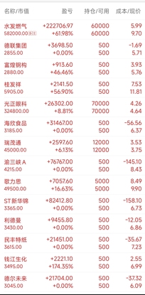 重仓的水发燃气数板模式,其他持股继续全红,新进的广农糖业连套的机会都没有,直接大阳,又是收益直飙的一天,昨天个别账户重仓水发减了一点,加仓了广农糖业,盘中不看盘,有决定再看盘,今年王炸开局,连板模式我也常遇到,抓妖,吃妖是我的强项,以前的妖王胜通能源就在水发燃气的板块里,市场定位毋容置疑,赚钱可以低调,但是作为市场的顶端投资人,在理解市场方面是一定要用肯定明确的分析的