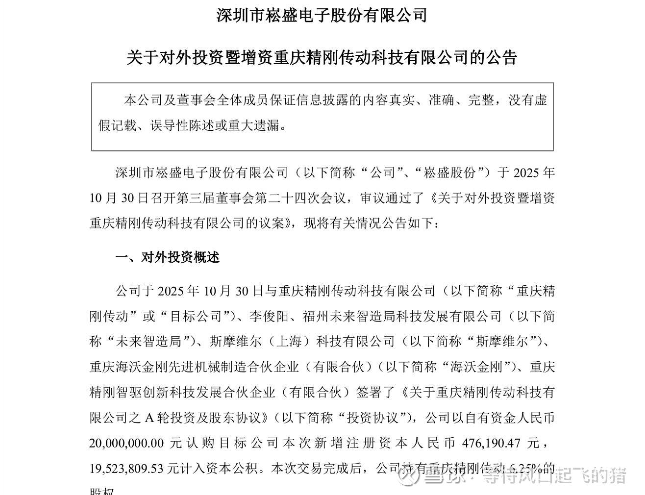 崧盛股份参股的重庆精刚传动,其核心产品——航天级谐波减速器——正是卫星和火箭中的关键精密部件,广泛应用于卫星天线、太阳能帆板的指向控制等,该公司的目标是占据国内航天用谐波减速器市场50%的份额,其技术有助于降低卫星制造成本,这与航天科技集团降低发射成本、推动商业航天发展的目标相契合 以下资料均来自公司年报 公告 官方信息的来源: 公告介绍:重庆精刚传动目前主要从事航天级谐波减速器的生产,研发和销售,主要聚焦壁垒相对较高,市场竞争较少的航空舟亢天应用领域,其主要客户为航天航空研究所,航天集团等科研