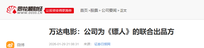 万达电影 镖人参与方 + 主出品飞驰人生3 院线绝对龙头