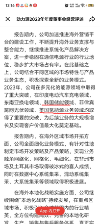 [海外业务】2023年,公司加速准进海外营转平台的建设工作,不所提升海外业务支撑与整合能力,继续性进系统化产品解决方案,进一步稳国在通售电源行业的行业地位,稳步扩大市场占有率,在此基础之上,公司结合不同区域的市场待件与产品!务生态,积极探表全新的川务机式,2023年,公司在多元化的能源领域中取得了重大突破,在印度电动汽车克电领域、东南亚换电领域、韩国储能领域、菲体宾离网光伏领成、美国氢能原业务领域均取得了重要的突破,为后续业务的大规模增长及实!客户价值最大化莫定基础,2023年,在海外区域市场开